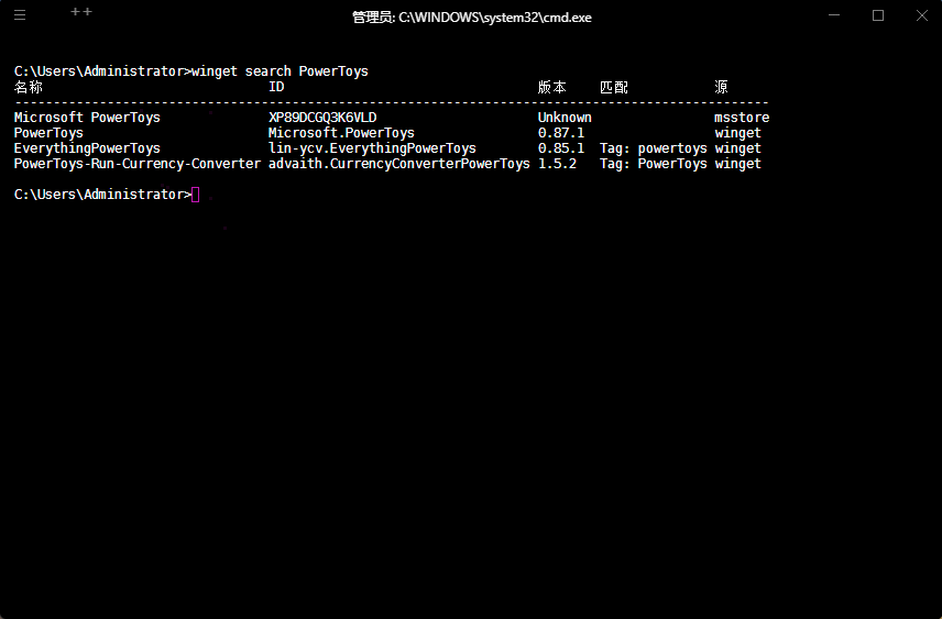 - ① winget 软件包管理器所管理的很多软件包可能会托管在 GitHub 上,因此需要你科学上网,否则可能会因为网络问题而导致软件包安装失败。