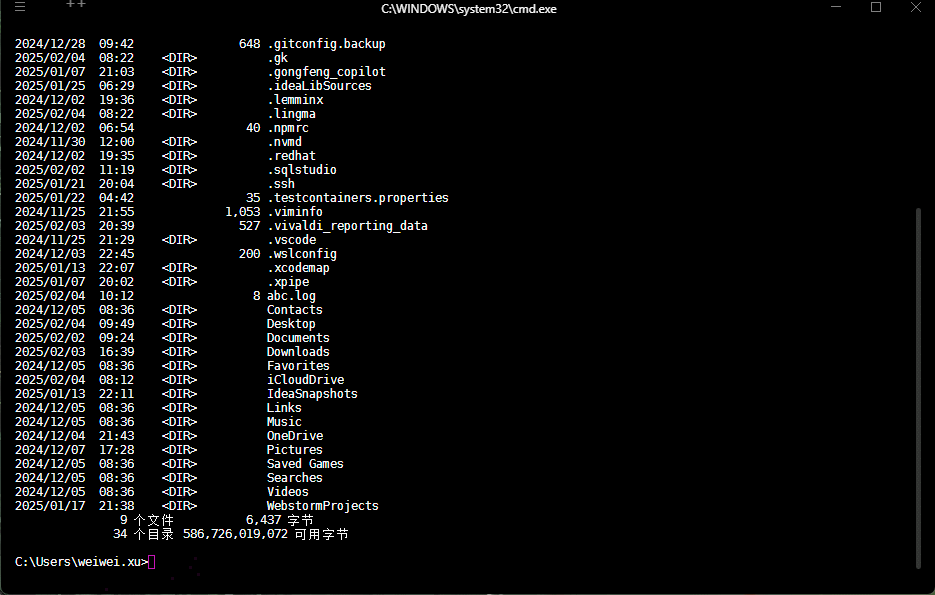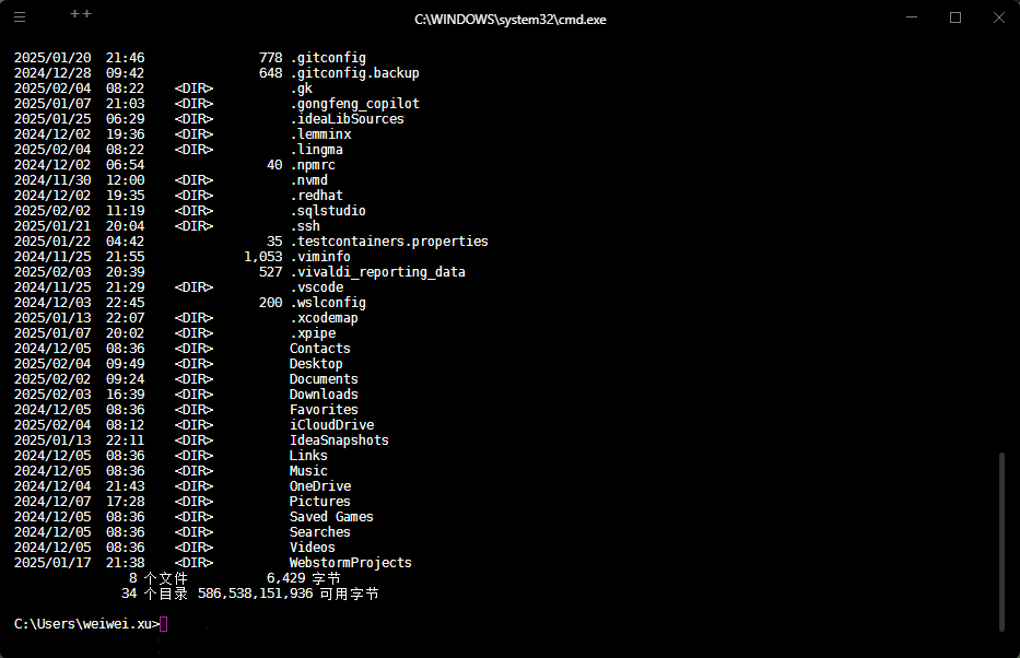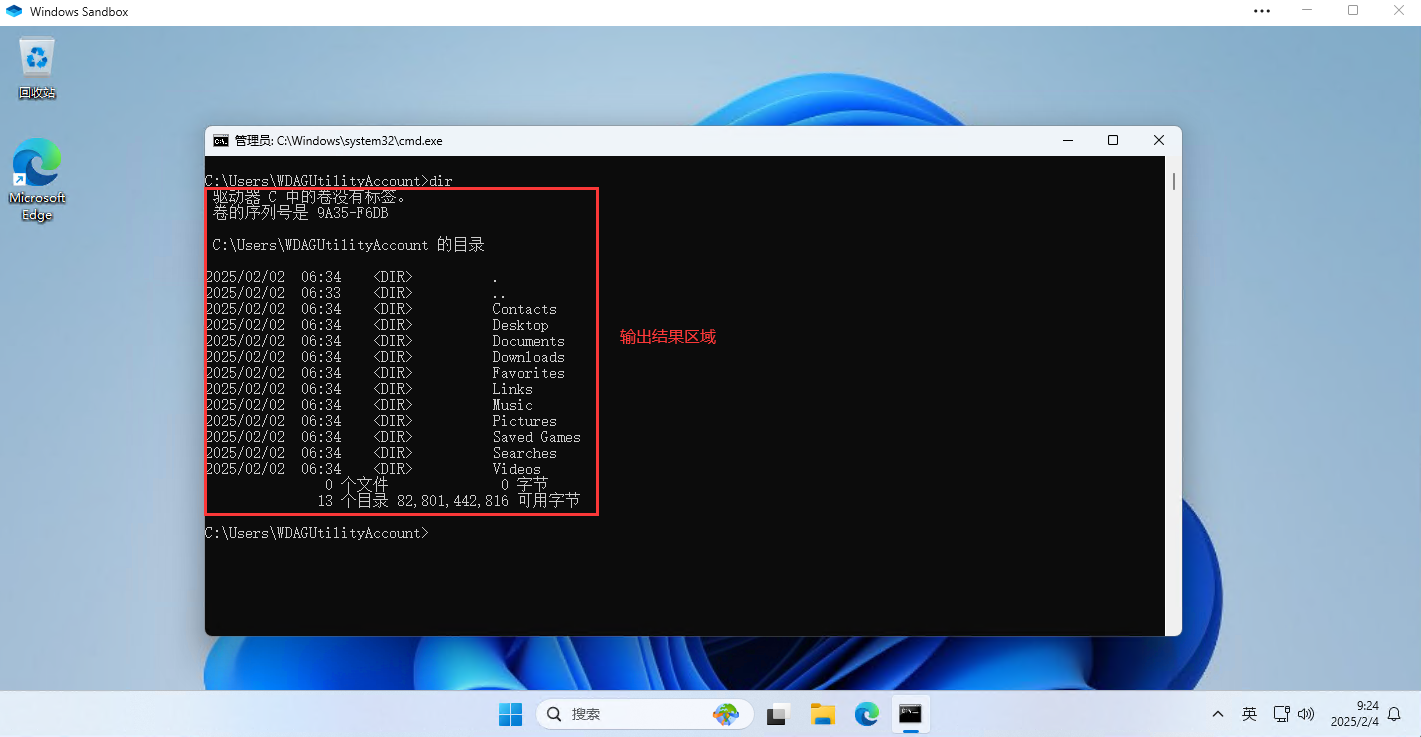 - ③ 输出结果区域:当用户输入命令后,命令行界面会显示命令的输出结果,通常为某些操作的执行结果,如:显示目录列表、错误信息等。