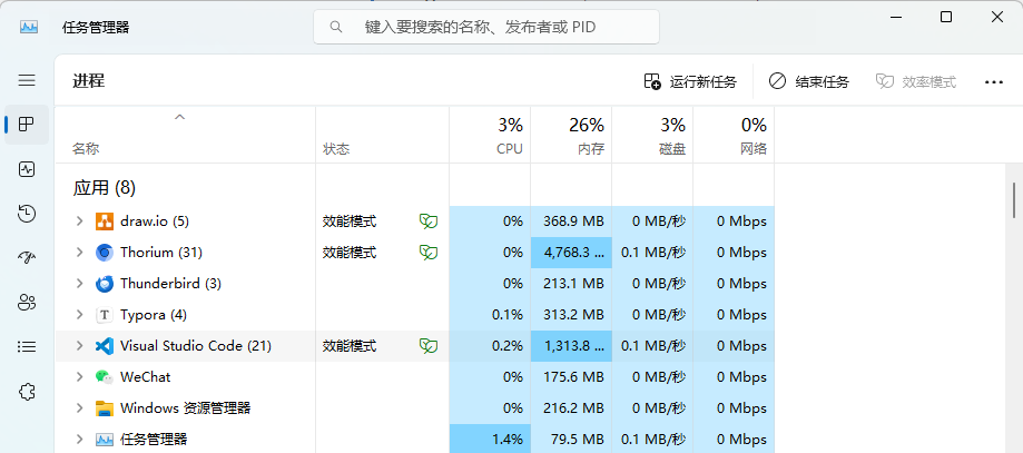 - 有些复杂应用(浏览器)会生成多个进程来分工,如:一个主进程负责管理,多个子进程负责不同的功能(渲染页面、处理插件等)。