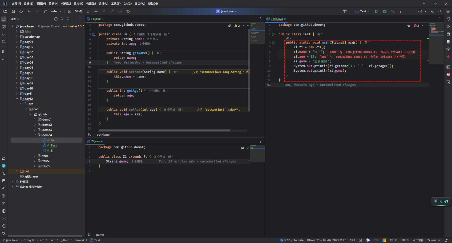 - 需求:编写带有继承体系结构的标准 JavaBean 类。