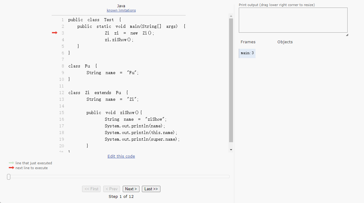 - this 和 super 都可以访问成员变量、成员方法以及构造方法,如下所示: