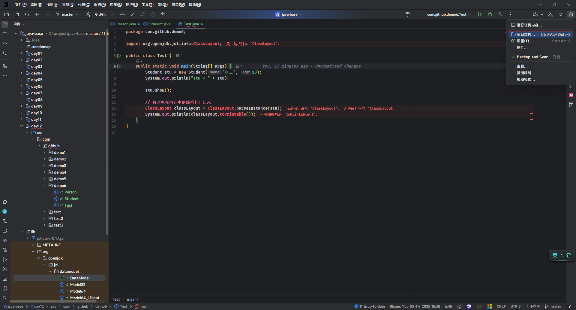 ClassLayout classLayout = ClassLayout.parseInstance(stu);