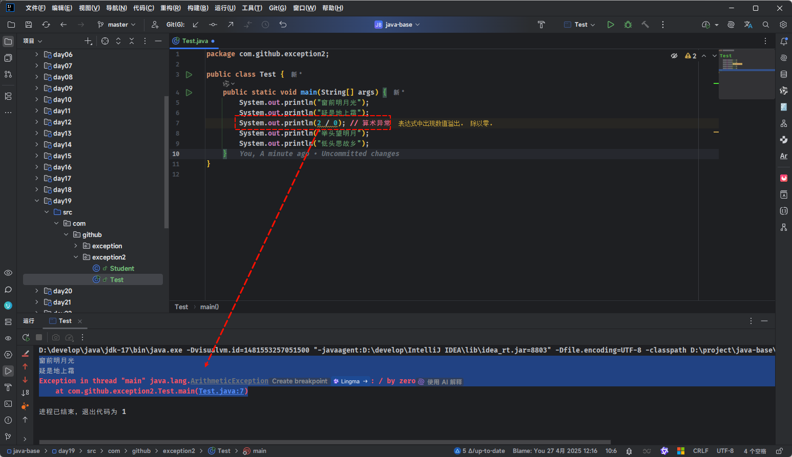 at com.github.exception.ArithmeticExceptionTest.main(ArithmeticExceptionTest.java:5)2