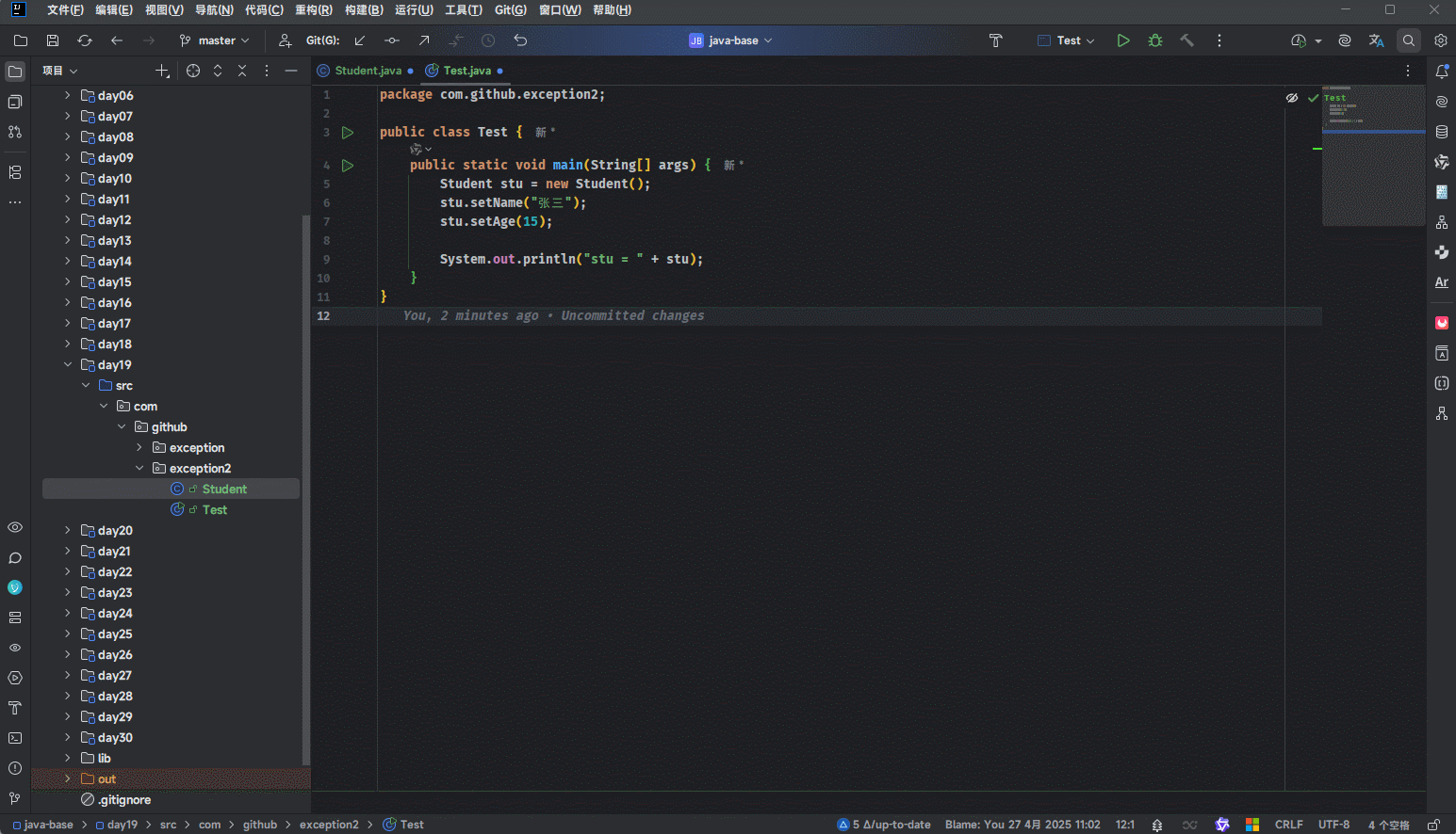 ② 编译时异常,在编译阶段就会直接报错,需要手动处理(强制),其目的就是为了