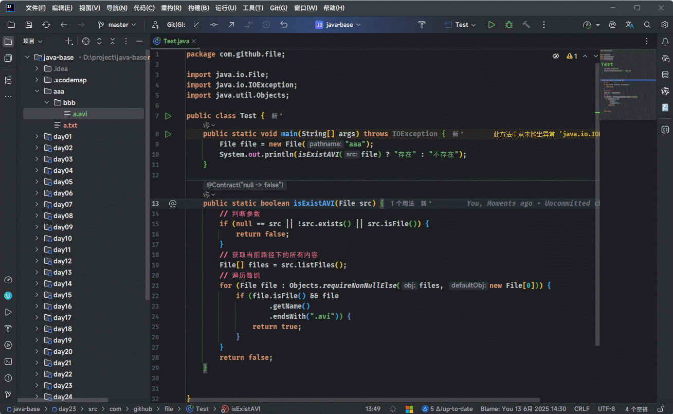 - 判断 File 对象表示的文件(目录)是否存在: