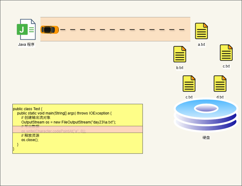 - ① 在 Java 中,如何传输数据,需要使用 IO 流技术(存储和读取数据的解决方案)。