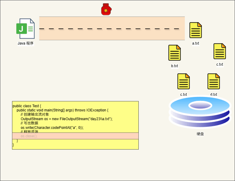 创建流对象和写出数据都有可能出现异常,导致不能释放资源: