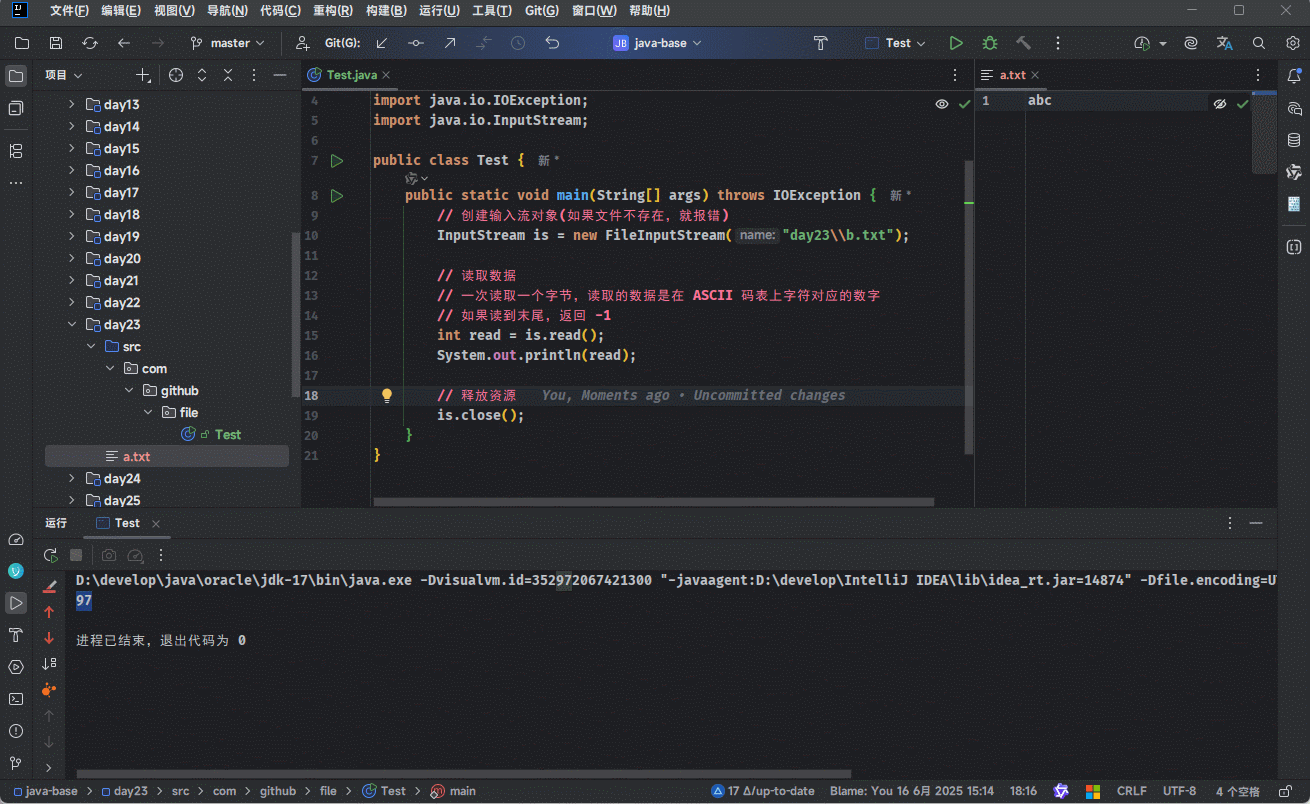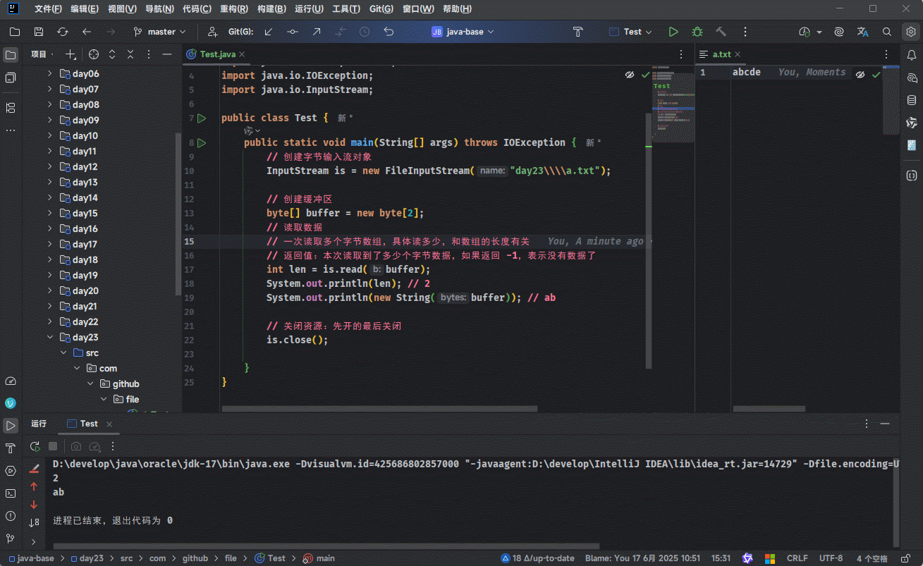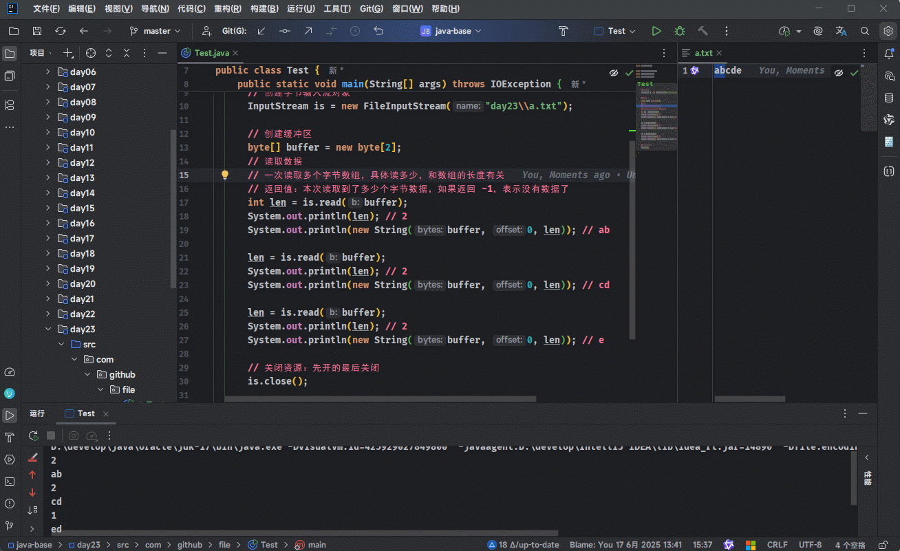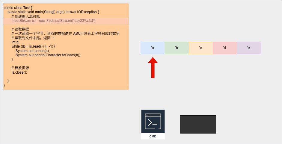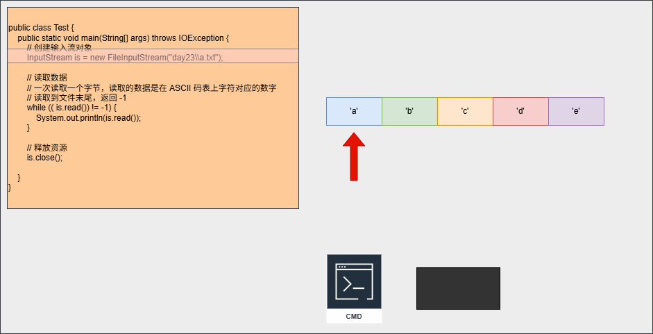 - 示例:一次读取一个字节
