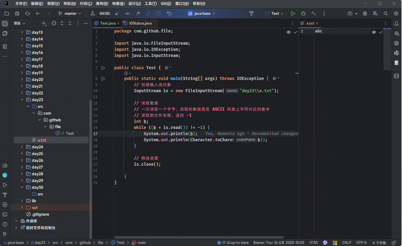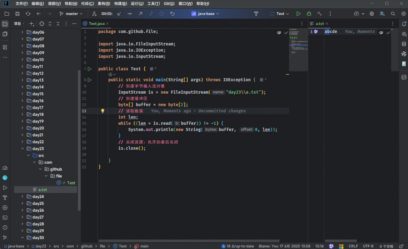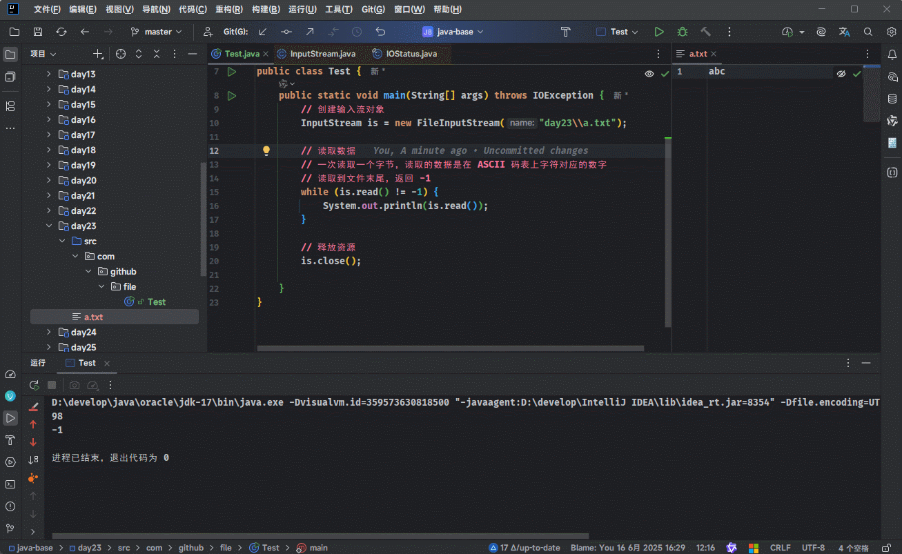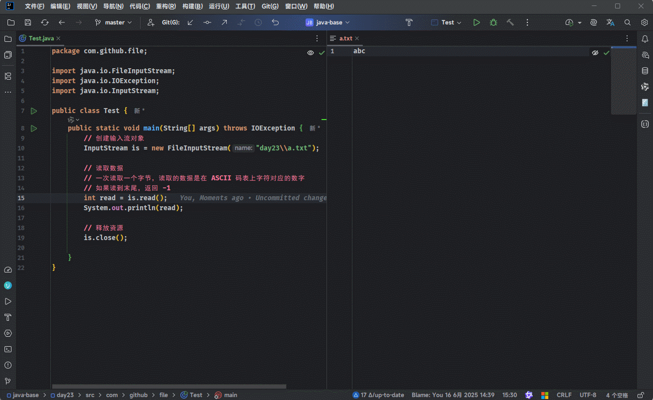 - 示例:一次读取一个字节