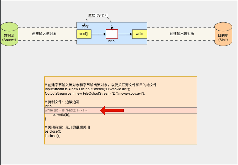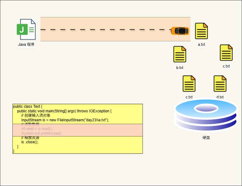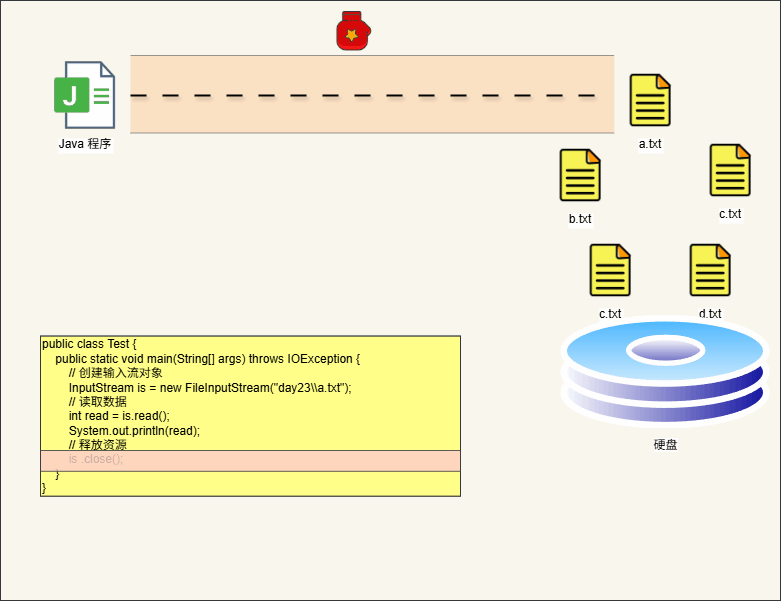 创建字节输入流对象时,就意味着内存和数据源有了一个传输数据的通道: