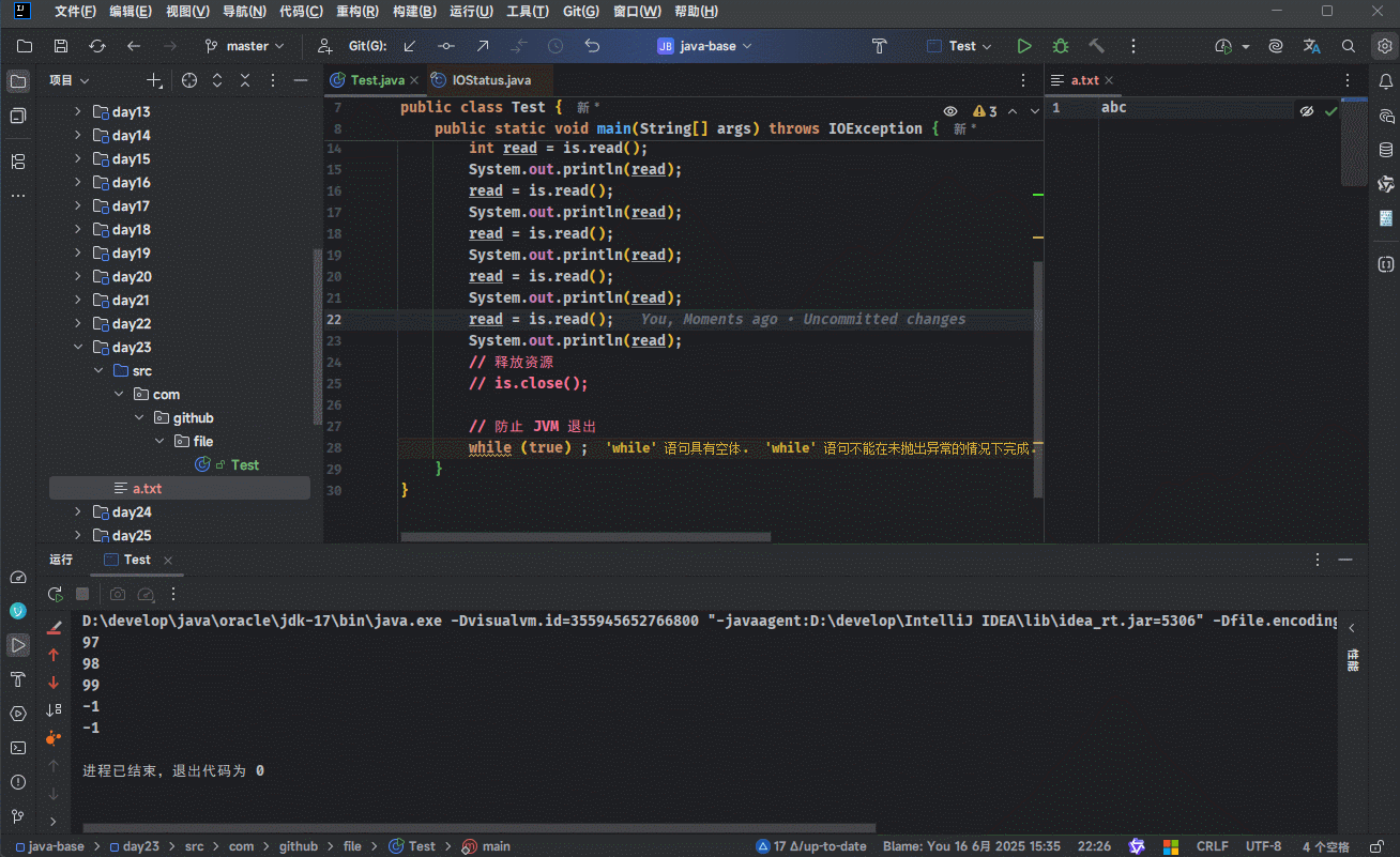kill -9 pid或者调用System.exit(0)。 - ③ 对于捕获到的异常,我们通常不会处理,而是将异常信息记录到日志中,然后直接向上抛(Spring 框架有全局异常处理器机制,能帮我们统一处理项目中出现的所有异常);但是,资源必须关闭!!!