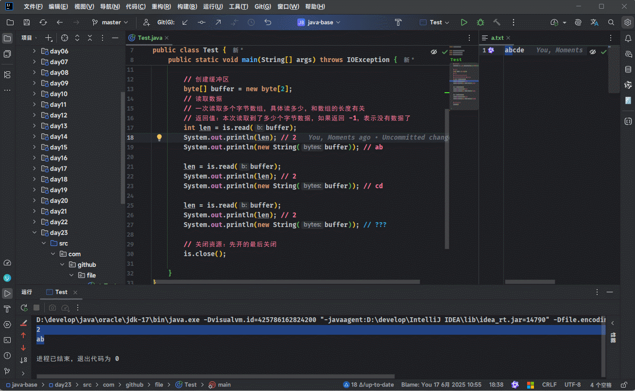 - 当代码执行到读取数据到缓冲区(数组)时: